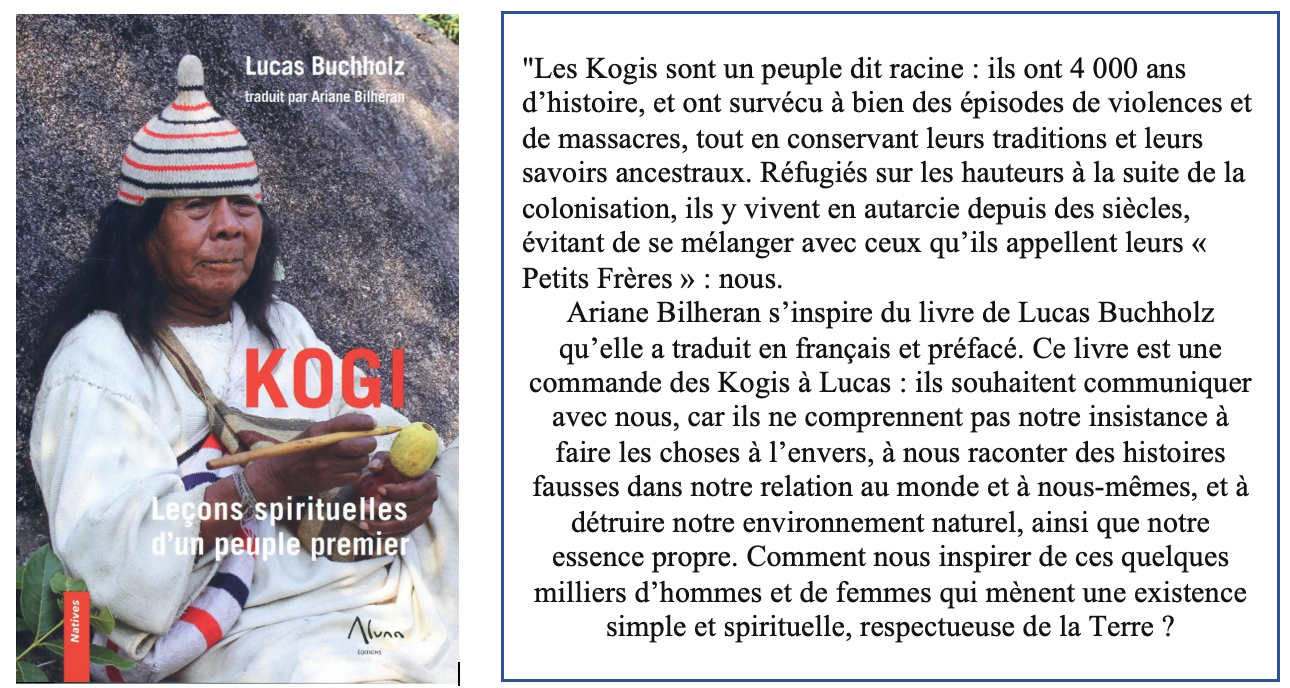 Pour cela, les lois de la nature, les lois de préservation de la vie que l’homme se doit de respecter, devront remplacer les « lois du plus fort », de compétition économique, faites par l’homme pour l’homme. Pour opérer ce changement, sans doute pourrions-nous nous inspirer de ces vénérables communautés du monde, au sein desquelles la dimension féminine est très présente, et expérimenter des solutions en faisant preuve d’humilité, de sensibilité, de créativité... à l'image des connaissances ancestrales des Kogis, dont je suis passionné.