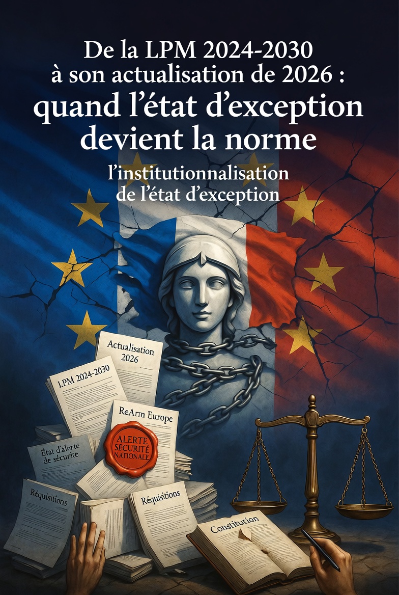 Sources : fil Telegram : https://t.me/vdar_avocat et article : https://dar-avocats.com/2026/04/10/de-la-lpm-2024-2030-a-son-actualisation-de-2026-quand-letat-dexception-devient-la-norme/